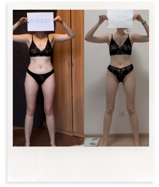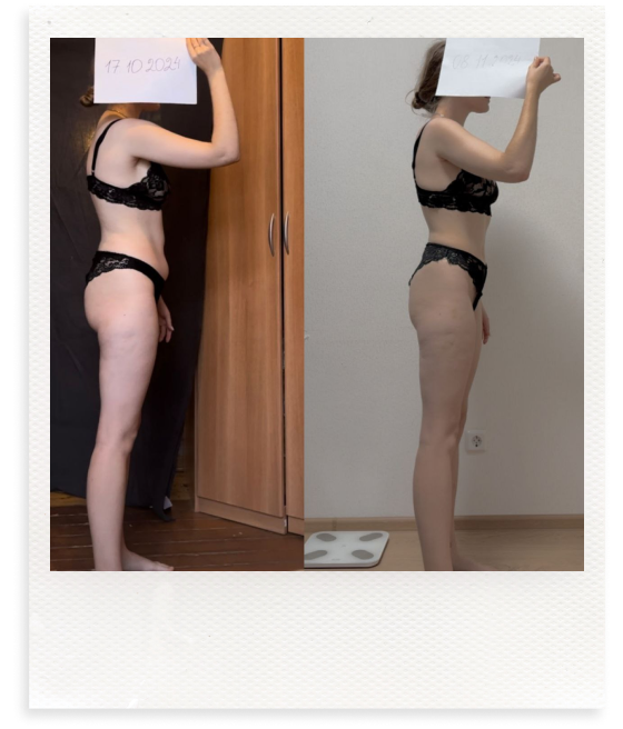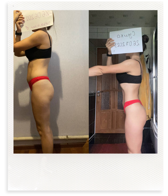 Я полностью пересмотрела питание, наладила сбалансированные приемы пищи, обрела лучшее самочувствие и переосмыслила отношение к своему телу. Уверенность и любовь к себе выросли, я теперь кайфую от себя в зеркале!